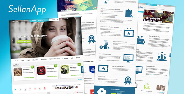 Brief: As with any start-up, constant changes to the business model mean SellanApp's service offering and style has to keep up. The existing site had had so many changes and as a result was cumbersome to use. And, iOS 7 beta had just been released, signalling a new style direction. A new style was needed for SellanApp that would reinforce the brand and its mission in crowdfunding app ideas for iOS - in a flexible and consistent way.